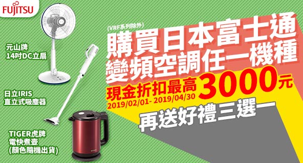 富士通空調↘現金折扣最高3千