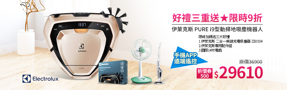 伊萊克斯掃地機器人↘9折送3禮